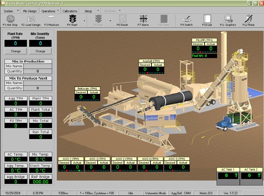 The ALmix Total Plant Control System automates the blending process of the asphalt mixture. It automatically batches and blends aggregates, liquid asphalt, mineral filler and RAP accurately throughout the full range of production. The Controls are operator friendly and yet extremely reliable and highly accurate. Batching and blending controls run on the latest user-friendly Microsoft Windows operating system. It has superior program logics that optimize the plant’s production, provides precise process control and consistent product quality.